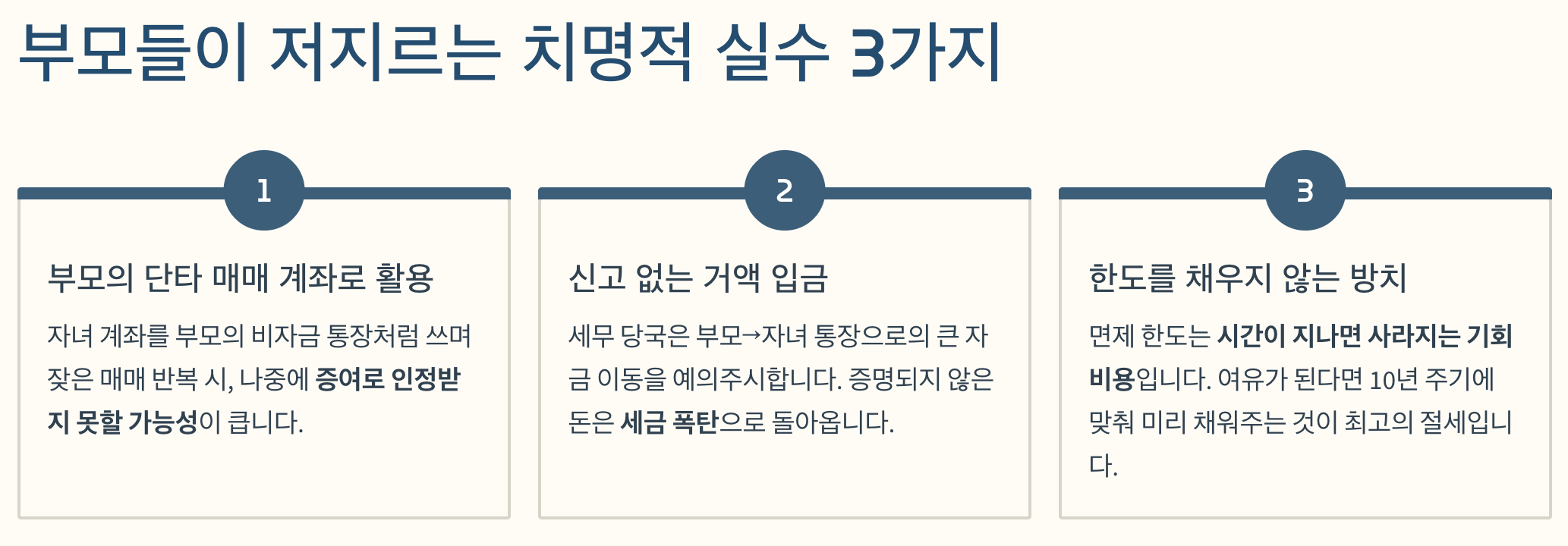 공들여 만든 자녀 계좌가 오히려 독이 되는 경우도 있습니다. 다음 세 가지는 반드시 경계해야 합니다.